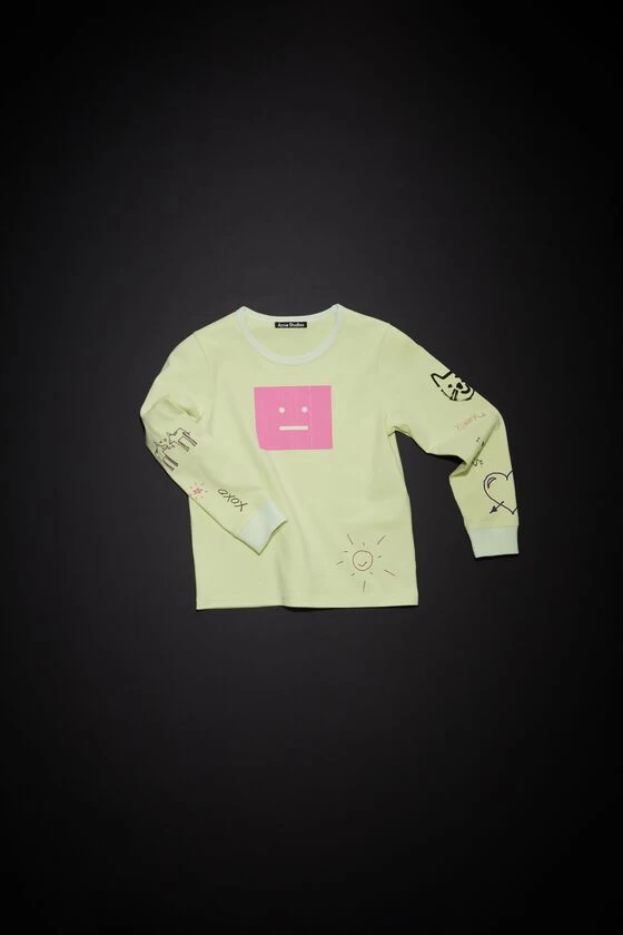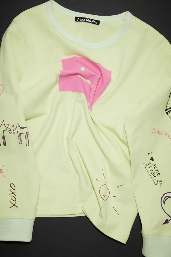 Acne Studios flou green features scribbles animation print and a face logo on the front, crafted from cotton. Cut to a regular fit with a crew neckline.