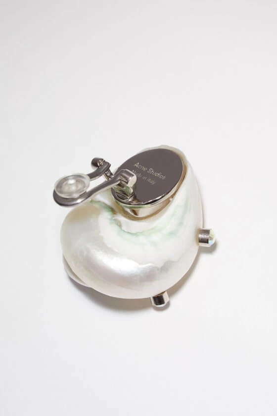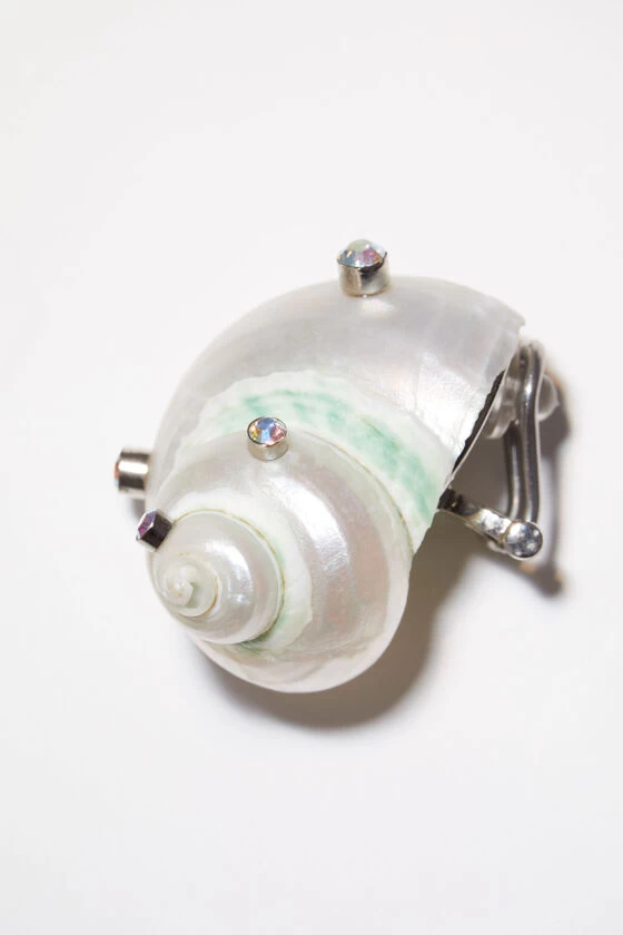 Acne Studios transparent earrings are adorned with shells that are detailed with embellishments.