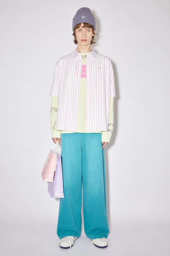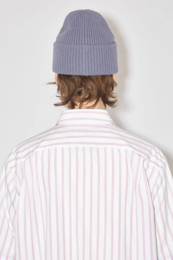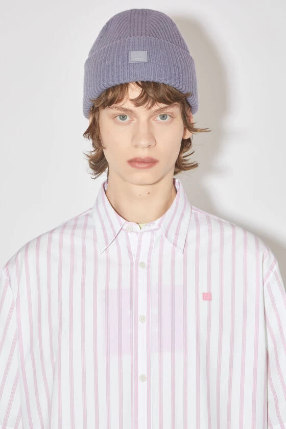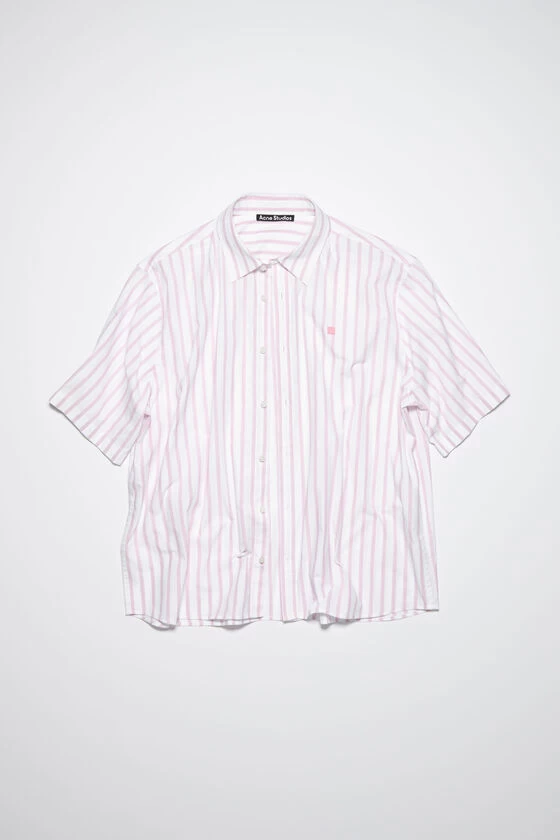 Acne Studios white/rose pink shirt features an all-over stripe pattern crafted from cotton. Detailed with a micro face logo patch on the chest and a face logo embroidery on the back. Cut to a relaxed unisex fit and a regular length.