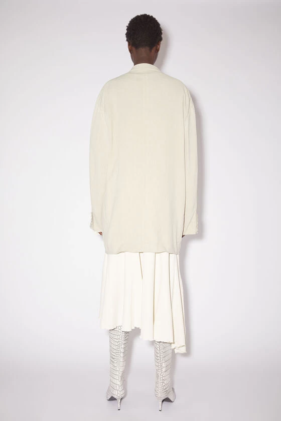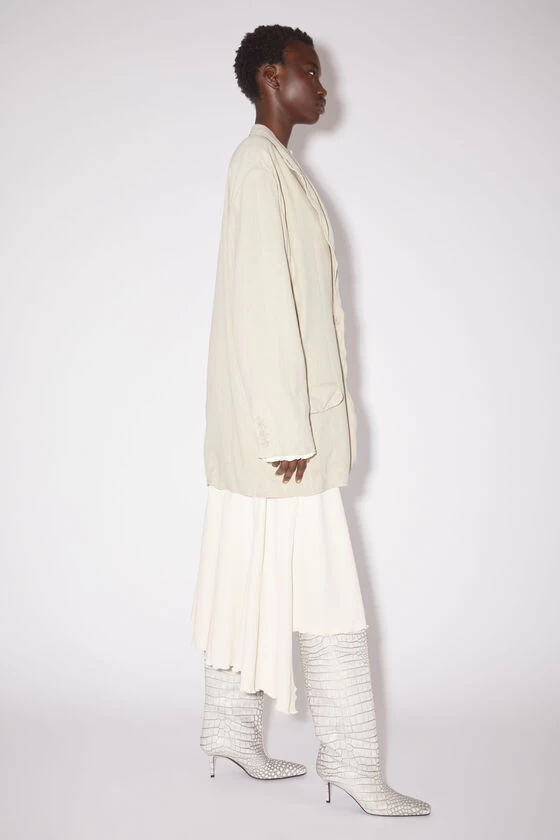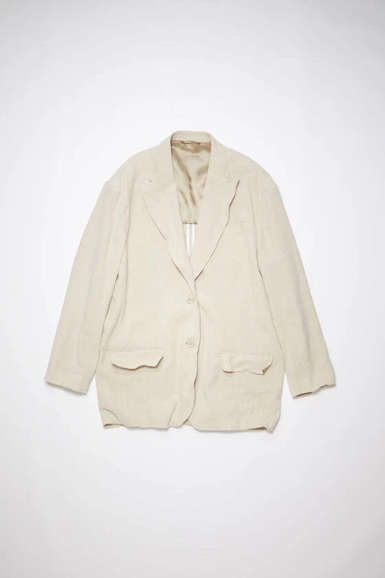 Acne Studios light sand single-breasted tailored suit jacket is crafted from a linen and cotton blend, complete with side pockets and a chest pocket. Cut to a relaxed fit and hip length.