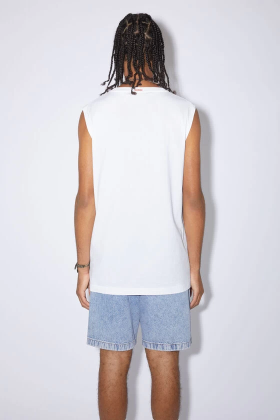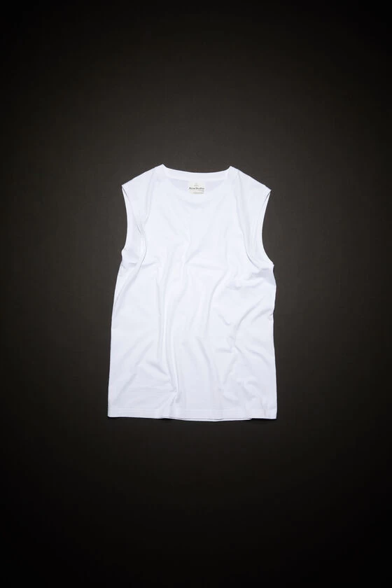 Acne Studios optic white sleeveless t-shirt is crafted from lightweight jersey cotton, detailed with a ribbed neckline and an Acne Studios pink label on the back. Cut to a regular unisex fit.