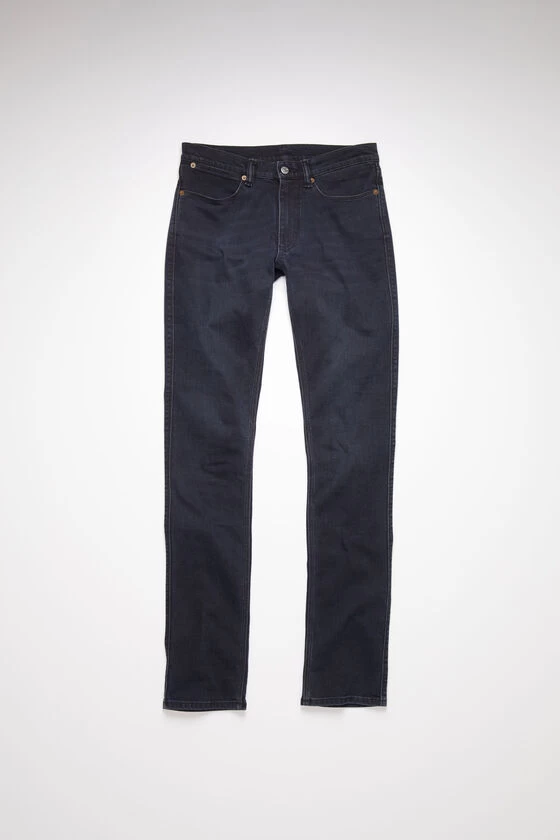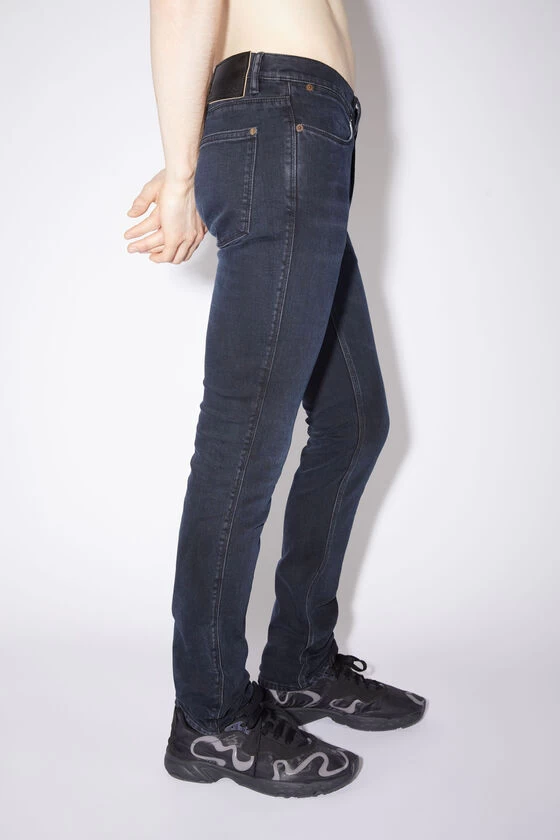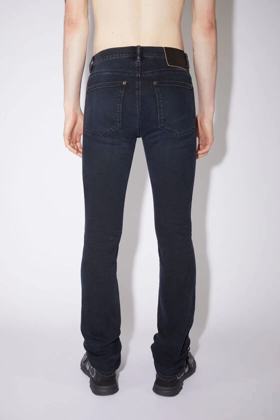 Acne Studios blue/black slim fit jeans feature a 5-pocket construction with a low waist, straight leg and long length. The Max jeans are crafted from comfort stretch denim made of organically grown cotton.