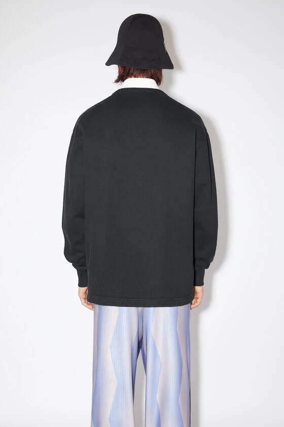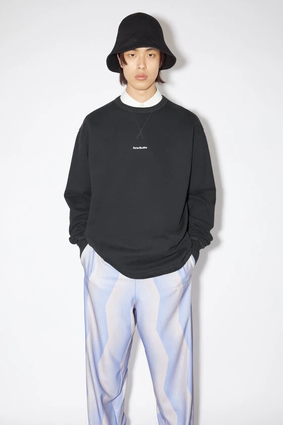 Acne Studios black crew neck sweater is crafted from heavyweight fleece cotton and detailed with an Acne Studios logo at the front. Complete with ribbed collar, cuffs and hem. Cut to a relaxed fit.