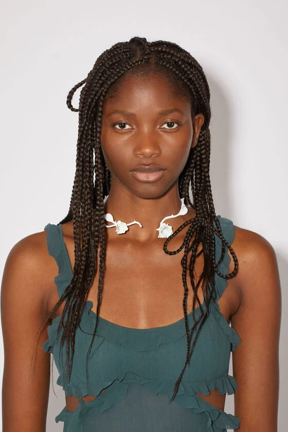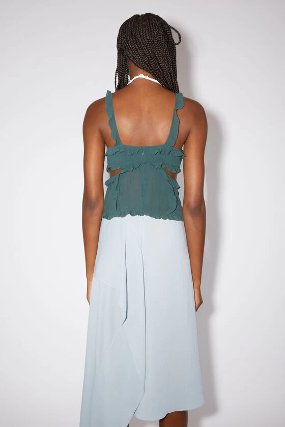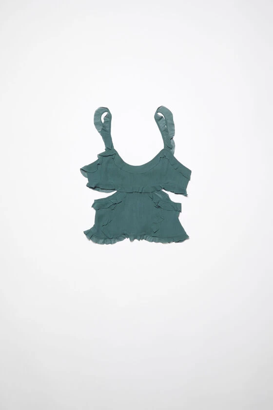 Acne Studios petrol blue strap top is detailed with ruffles and cut to a regular fit.