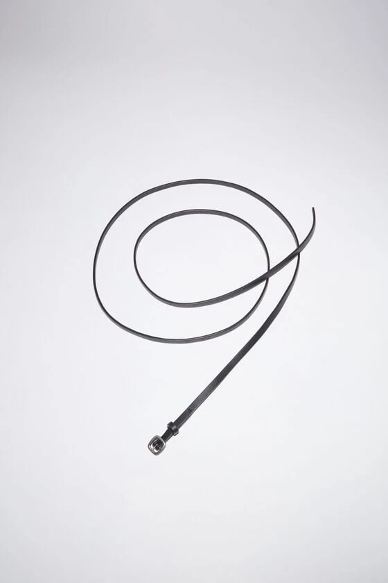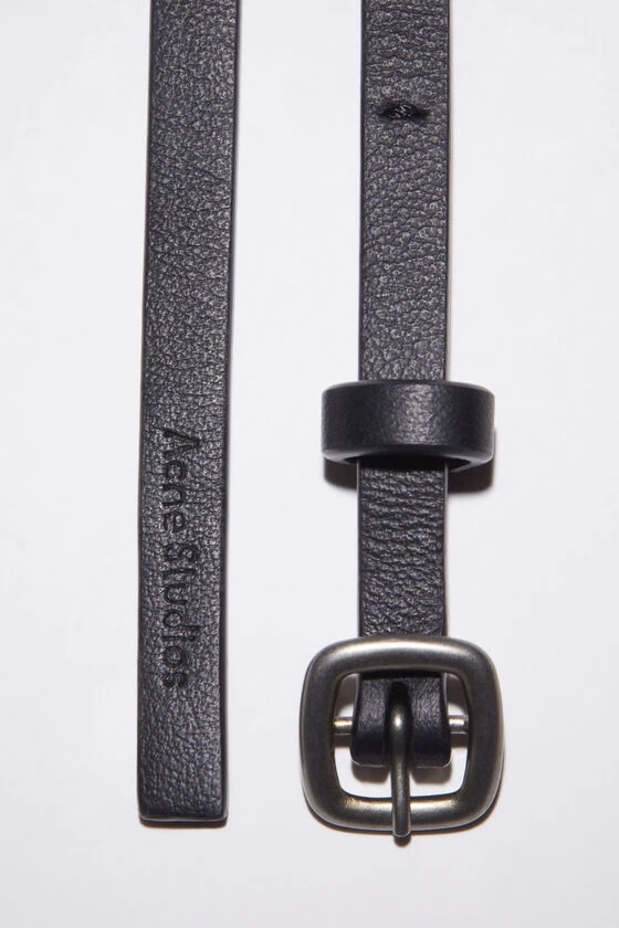 Acne Studios black thin buckle belt is made of soft nappa calf leather with silver-tone hardware.