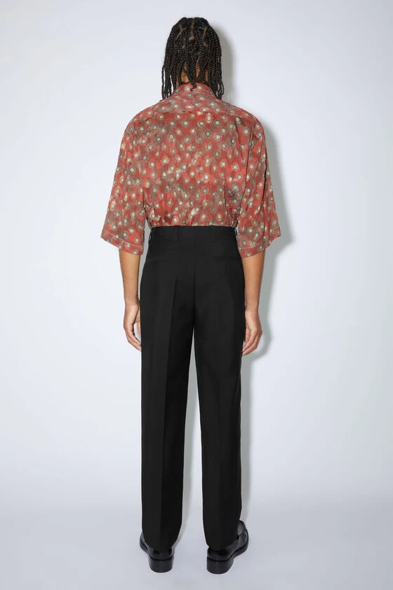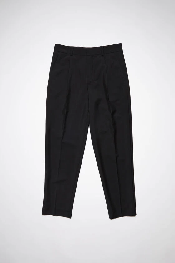 Acne Studios black casual suit trousers feature slanted pockets and a back patch pocket. Crafted from a wool mohair blend and cut to a regular fit with a long length.