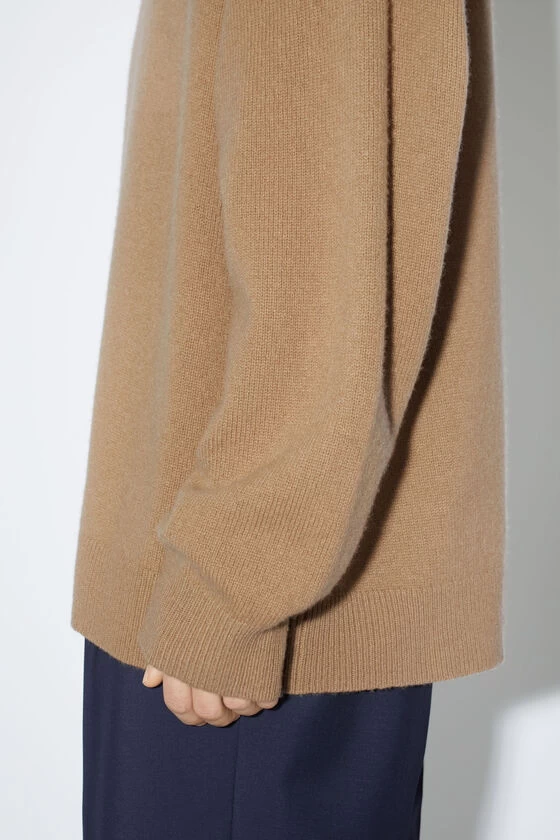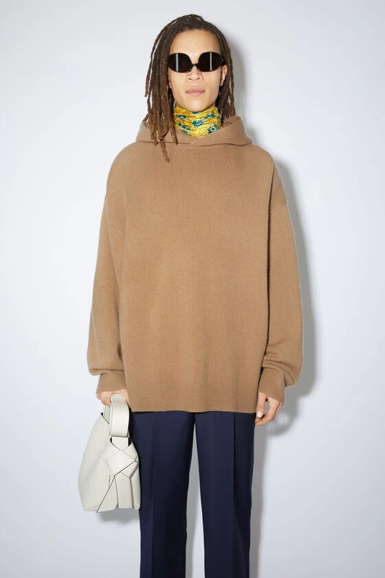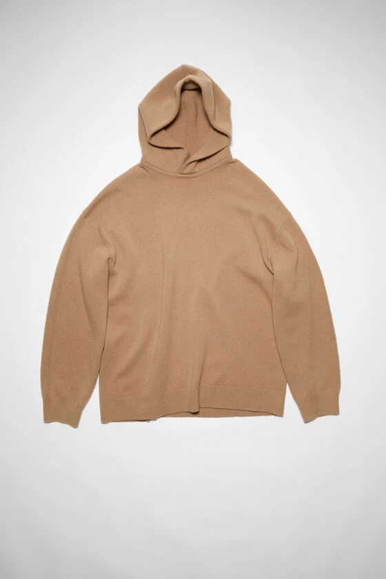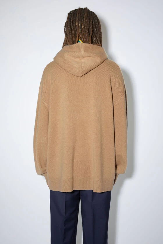 Acne Studios light brown wool-cashmere hooded jumper is crafted from cashmere and certified wool blend according to the Responsible Wool Standard. Detailed with a pink flag label and cut to a relaxed fit.