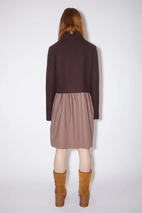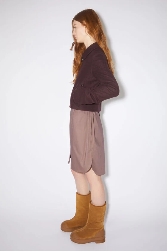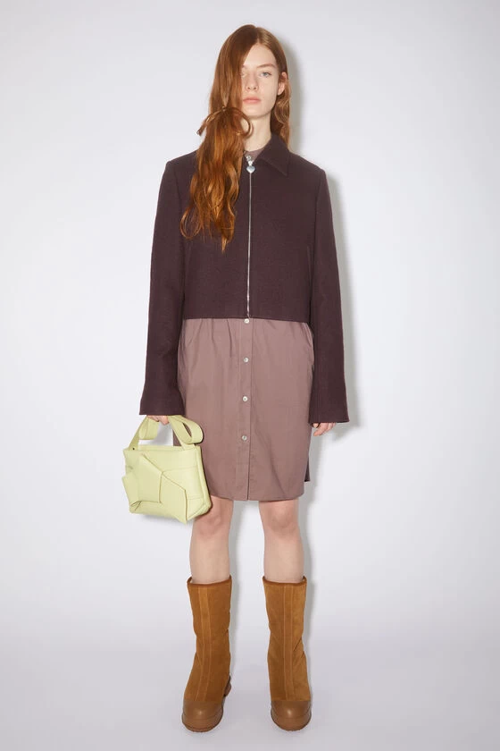Acne Studios dark burgundy jacket is crafted from wool and features a centre front zipper closure and side pockets. Cut to a regular fit with a below waist length.