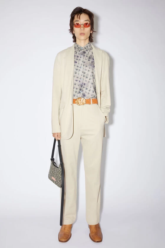 Acne Studios clay beige trousers are crafted from woven technical crepe jersey and cut to a regular fit.