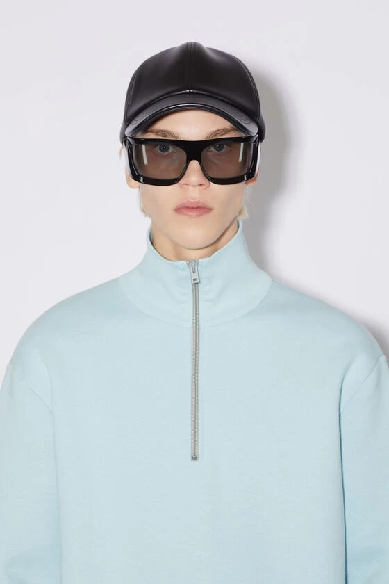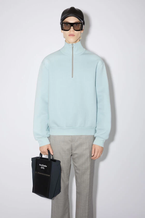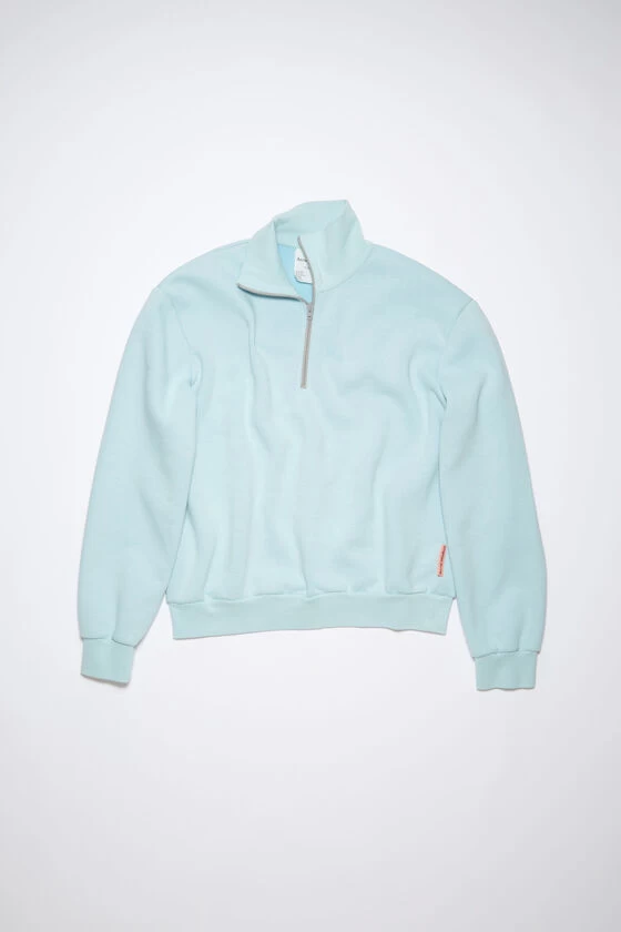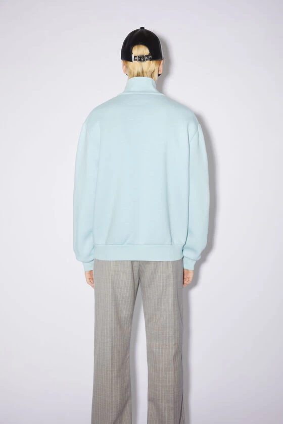 Acne Studios mineral blue sweatshirt is crafted from midweight brushed fleece cotton, detailed with a zippered turtleneck and Acne Studios pink label on the side seam. Cut to a regular unisex fit.